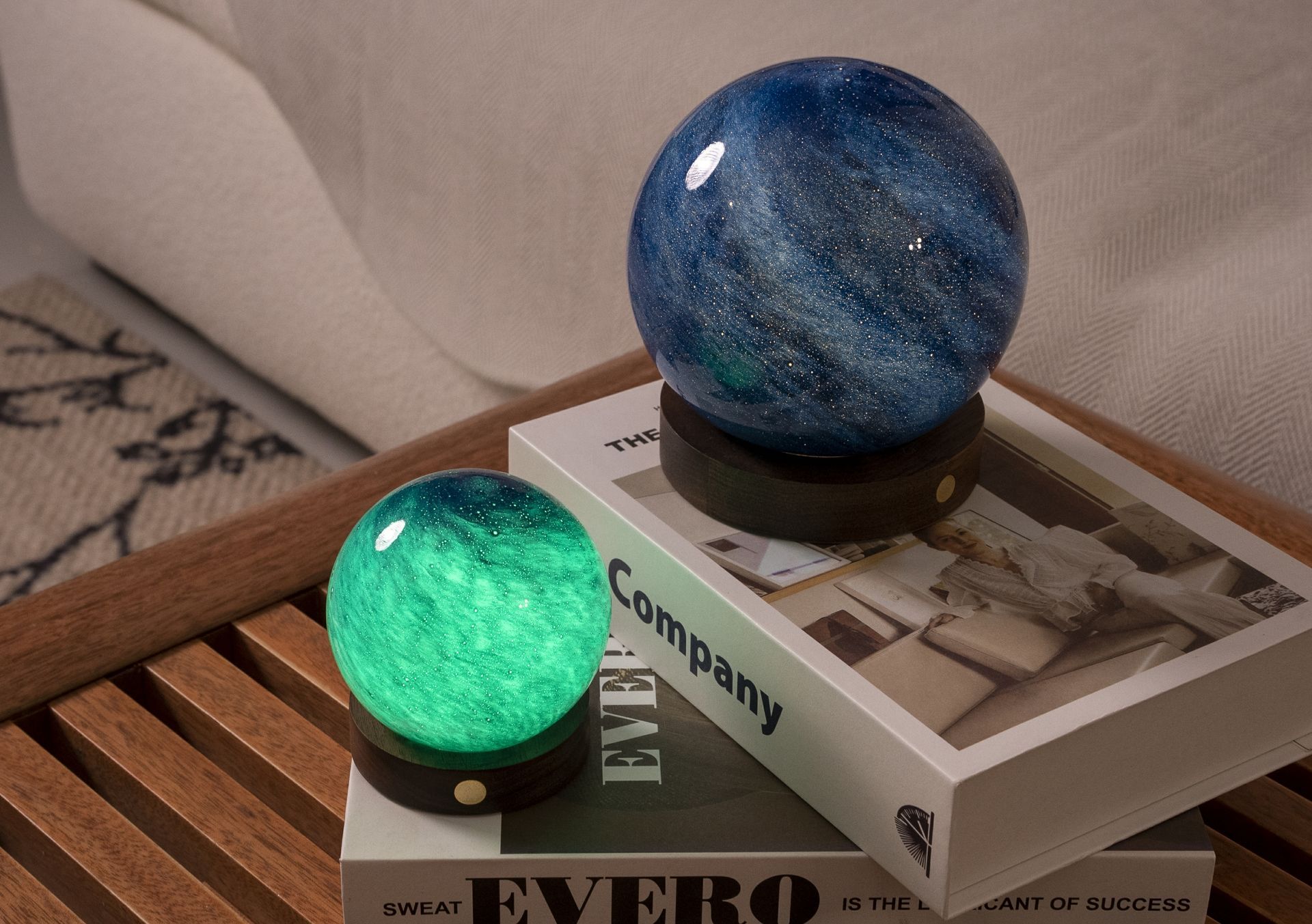 Mit drei Lichtmodi – warmweißes Licht, Farbwechsel oder Farbauswahl. Jedes Leuchten ist ein Meisterwerk – sanft, ätherisch und absolut faszinierend. Ob kosmisches Ozeanblau, warmes Goldstrahlen oder bezauberndes Galaxienrot – diese Leuchte ist mehr als nur Beleuchtung.